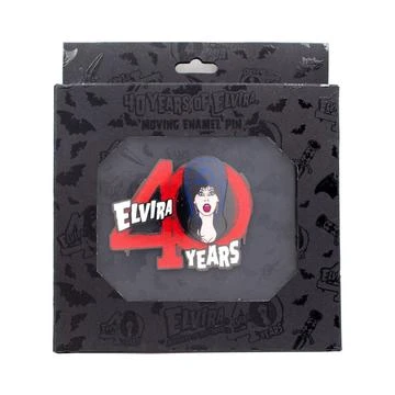 Celebrate 40 years of Elvira Mistress of the Dark with this officially licensed jumbo pin! Pin Features a commemorative 40 year design with red glitter enamel and measures a huge 3.25″ x 2.5″ inches!