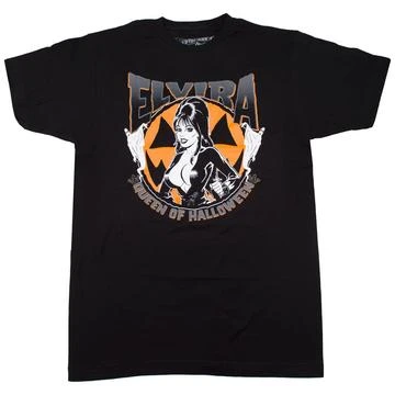 Official licensed Elvira Mistress of the Dark, Elvira Pumpkin Queen Of Halloween Mens T-Shirt. 100% Cotton screened T-shirt , Printed in the USA