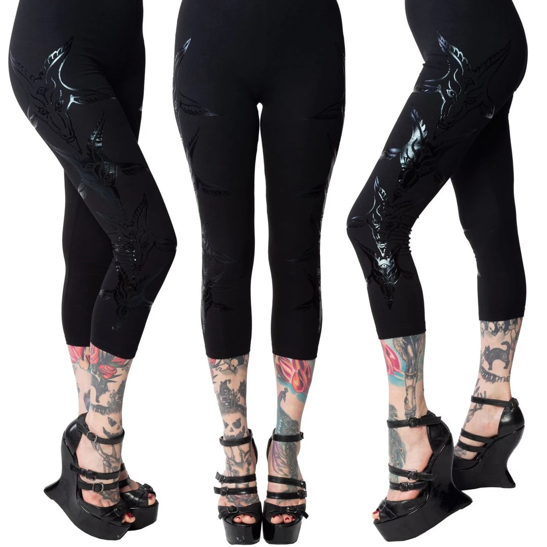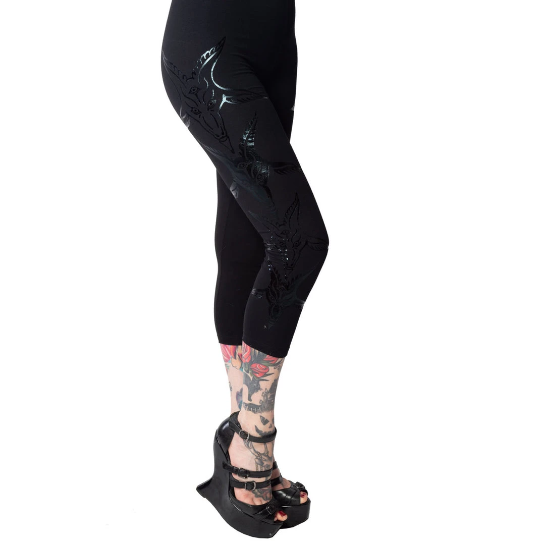 Kreepsville666 Goathead Black Foil Capri Leggings
