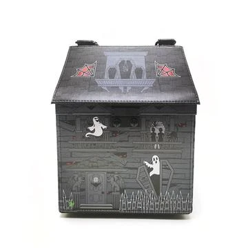 Now you can own your own haunted house! Our Haunted House Purse comes complete with printed ghosts and skeli girls! It has a detachable adjustable shoulder strap, inside ID pocket and a velcro detachable zip pocket divider that can be removed to make the purse one large compartment. Made form PU (vegan) leather, bag is approx. 7″W X 9″H X 5″D (18cm x 23cm x 13cm)