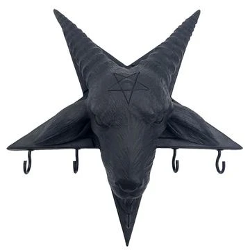 Hang your keys, necklaces or whatever your black heart desires from this unholy homewear. This goat wall hanger comes with 2 holes in the back so you can easy and quickly secure it to the wall with nail or screws (nails and screws not included). This goat features 5 hooks to hang jewelry, masks, or keys. Goat hanger Measures approx. 7″ x 7″ x 2.75 deep (17.78 cm x 17.78 cm x 8 cm deep)