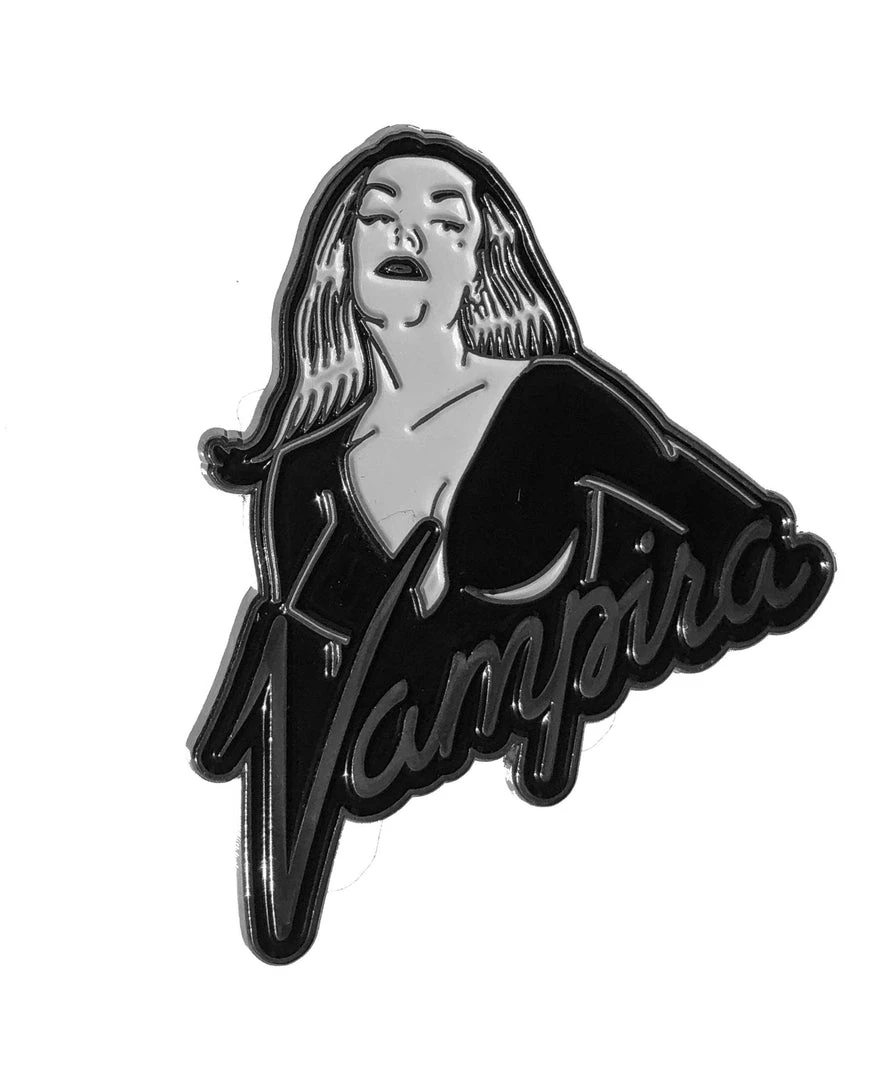 Vampira official licensed portrait logo enamel pin badge. Size approx 2 in (5cm) high.