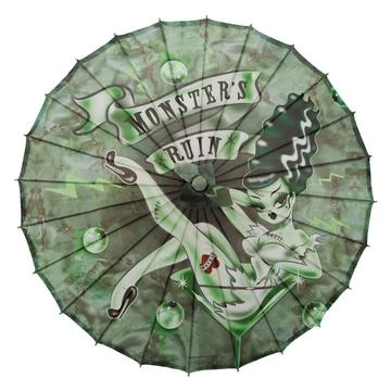 Monsters Ruin Mobile Parasol, fabric parasol with bamboo handle, stay in the shade with this parasol or use it as the perfect decoration! featuring artwork by Miss Fluff. Parasol 32″ in diameter and 22″ handle length