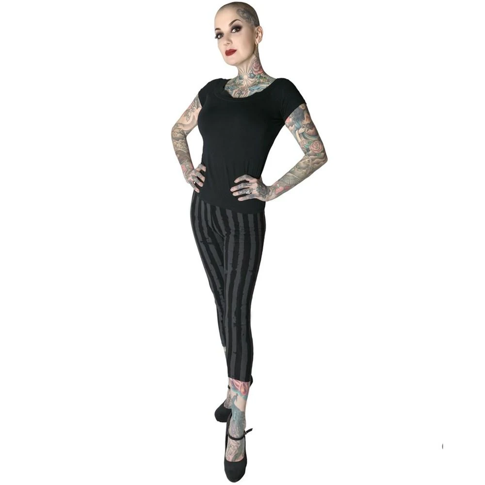 Kreepsville666 Stripe Grey Distressed Capri Leggings KREEPSVILLE 666